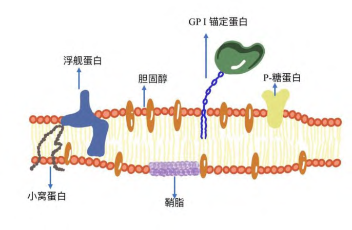 脂筏(lipid raft microdomains, LR)是细胞膜上富含胆固醇和鞘脂的微小结构域(图1),具有独特的物理化学特性,可作为信号转导、细胞黏附和蛋白质运输等关键生物学过程的调控枢纽。近年研究发现,LR的功能异常与多种疾病密切相关,包括肿瘤、神经退行性疾病和心血管疾病等。由于其重要的病理生理作用,以LR为靶点开发新型治疗策略已成为当前研究热点。