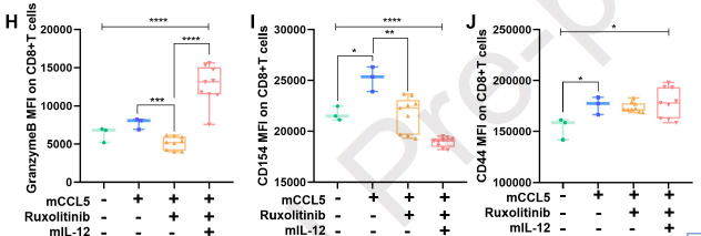 研究发现:肿瘤内 CCL5?DC 高表达 CCR8 配体(CCL1、CCL8),可与 CCR8?Treg 特异性结合,抑制 DC 的 IL-12 分泌;当用 CCR8 抗体清除 Treg 后,CCL5?DC 通过 JAK-STAT 通路激活,大量分泌 IL-12,进而增强 CD8?T 细胞的颗粒酶 B(Granzyme B)表达和增殖能力。