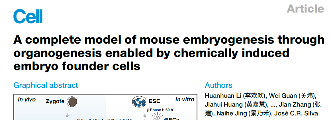 论文截图:A complete model of mouse embryogenesis through organogenesis enabled by chemically induced embryo founder cells