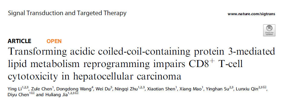 论文截图:Transforming acidic coiled-coil-containing protein 3-mediated lipid metabolism reprogramming impairs CD8+ T-cell cytotoxicity in hepatocellular carcinoma