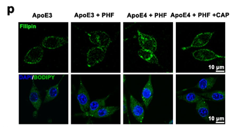 1. 证明 APOE4 会导致微 glia 中胆固醇积累 2. 验证辣椒素可通过 TRPV1 抑制胆固醇合成,减少胆固醇积累 |