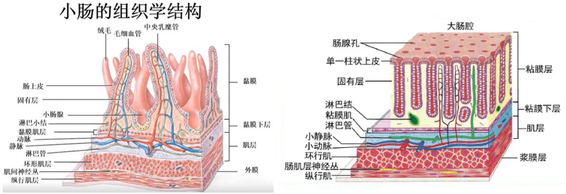 3)外膜:大部分为浆膜(与腹膜相连),少部分为纤维膜。