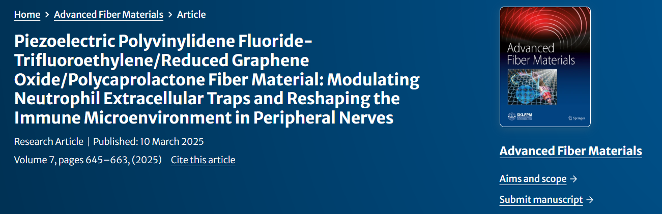 文献标题:Piezoelectric Polyvinylidene Fluoride-Trifluoroethylene/Reduced Graphene Oxide/Polycaprolactone Fiber Material: Modulating Neutrophil Extracellular Traps and Reshaping the Immune Microenvironment in Peripheral Nerves