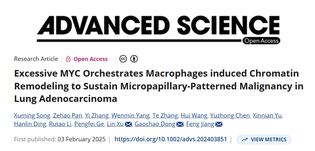 文献标题:Excessive MYC Orchestrates Macrophages induced Chromatin Remodeling to Sustain Micropapillary-Patterned Malignancy in Lung Adenocarcinoma